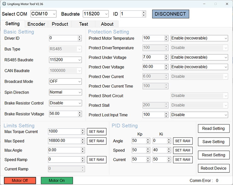 Driver for MG6010-6 Duo motors 2 encoders with RS485 bus