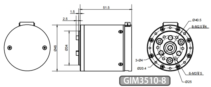 25635100 GIM3510-8 Robot dog motor with 8:1 gear box Stator 3510 1.0Nm 534RPM Max 6.28Nm 588RPM 248g without Drive