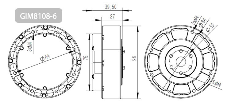 GIM8108-6 Robot dog motor 6Nm 200RPM Max 15Nm 350RPM with gear box 6:1 Driver Cyberbeast Stator 8108 574g