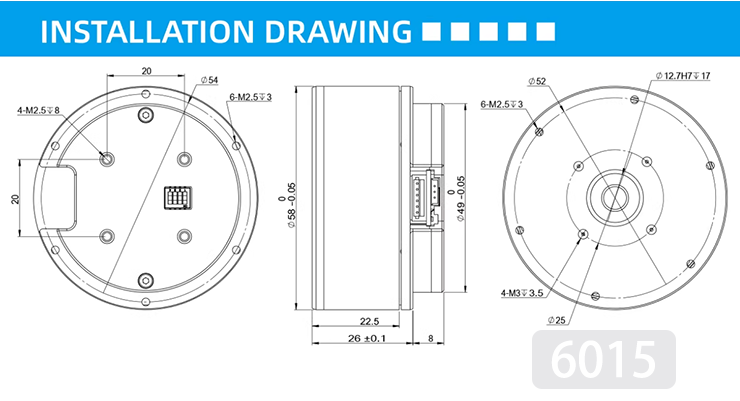 257601532 MS6015 V3 Servo Motor & CAN Driver 2A 15bit 0.79Nm 242g 15KV with hollow encoder magnet for slip ring 60T
